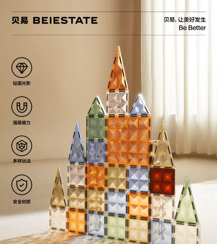 贝易儿童磁力片彩窗益智拼装玩具婴儿磁吸积木方块男女孩生日礼物