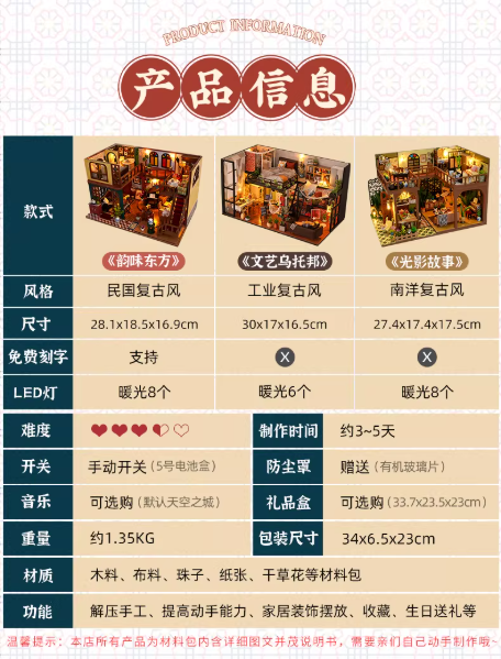 diy小屋手工拼装积木拼图微缩场景房子别墅模型玩具生日礼物摆件